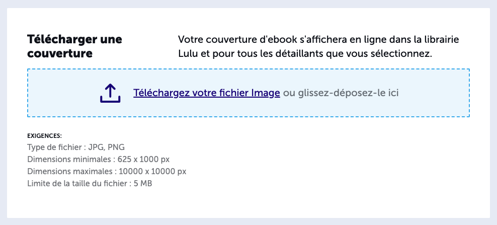 Lulu propose plusieurs façons de créer une couverture pour votre projet ! Vous pouvez accéder aux options de création de couverture après avoir téléchargé votre fichier PDF pour l'intérieur intérieur. Cela permet à notre site de créer un modèle personnalisé en utilisant votre nombre exact de pages. La tranche du dos sera précisément dimensionnée sur ce modèle afin de rendre la création d'une couverture plus facile que jamais ! TABLE DES MATIÈRESTélécharger un modèleTélécharger votre fichier PDF - Imprimer la couverture du livreAperçu du livreCouverture pour ebookInstructions spéciales pour les couverture de bandes dessinées et de magazinesCouverture rigide avec jaquetteTélécharger un modèleSi vous choisissez cette option, nous vous fournirons un ensemble de modèles personnalisés comprenant les 1ère et 4ème de couverture ainsi que la tranche du dos. Ces modèles seront dimensionnés en fonction de votre choix de papier, de la reliure, du format et du nombre de pages. Cet ensemble de modèles comprendra un modèle personnalisé pour chaque reliure que nous proposons. Télécharger votre fichier PDF - Imprimer la couverture du livreVotre couverture doit être un fichier PDF d'une page (1ère, 4ème de couverture, tranche du dos) comprenant tout le contenu de la couverture.Il est important de noter que la quatrième de couverture doit être placée en premier dans votre fichier pour garantir une impression correcte. Spécifications : Les images incorporées ont une résolution minimale de 300 PPP et ne dépassent pas 600 PPP. Les images vectorielles sont tramées Toutes les polices sont correctement incorporées Les calques transparents et les objets vectoriels sont aplatis Les pages sont dimensionnées pour correspondre au format du livre prévu - voir page 13 de notre Guide de création de livre pour le calcul de la largeur du dos. Incluez les dimensions des fonds perdus (0,125 po) avec la taille de votre page PDF. Prévoyez une marge de sécurité de 0,5 pouce pour tout le contenu. N'incluez PAS de lignes de coupe, de fond perdu ou de marge. N'utilisez PAS de protection de fichier par mot de passe ou sécurité.Aperçu du livreUne fois que vous avez téléchargé un fichier d'intérieur et de couverture acceptable, vous pourrez voir l'aperçu du livre. Vous verrez alors les marges, les fonds perdus, les plis et les coupes, ce qui vous permettra de vérifier que tout se présente comme il se doit. Couverture pour ebookLa couverture d'un ebook se compose uniquement de l'illustration de la 1ère de couverture, qui doit inclure le titre du livre et le nom de l'auteur. Contrairement aux livres imprimés, il n'y a pas de quatrième de couverture ou de rabats de jaquette sur une couverture d'ebook qui peuvent être utilisés pour fournir des informations sur l'auteur ou un synopsis de votre œuvre. Les images pour les ebooks doivent être créées et ajoutées à votre document en RVB. La plupart des images créées sur les ordinateurs sont créées en RVB. Si vous ouvrez votre image dans Microsoft Paint sur un PC et dans Aperçu sur un Mac, vous devriez pouvoir voir l'espace couleur dans lequel l'image a été créée.La couverture de l'ebook doit être créée selon les spécifications suivantes :Type de fichier : JPG, PNGDimensions minimales : 625 x 1000 pxDimensions maximales : 10000 x 10000 pxRemarque : les dimensions recommandées sont de 2560 x 1600 pixels.Taille maximale du fichier : 5 MoRésolution : 72 PPI ou plus pour obtenir une image claire lorsqu'elle est affichée en plusieurs tailles.Instructions spéciales pour les couverture de bandes dessinées et de magazinesSi vous créez une bande dessinée ou un magazine, vous avez la possibilité d’imprimer sur la 2ème et la 3ème de couverture ! Afin d’utiliser cette option, vous devez télécharger un PDF à 2 pages (Ne prêtez pas attention aux exigences de l’image ci-dessus).Nous vous recommandons de télécharger le modèle fourni pour une bande dessinée ou un magazine pour voir la mise en page requise pour ce design de couverture unique.Couverture rigide avec jaquetteSi vous téléchargez votre propre couverture pour un projet de couverture rigide avec jaquette, notre modèle vous montre comment concevoir les rabats ainsi que les couvertures avant et arrière.Vous choisirez aussi la couverture en lin parmi les différentes couleurs offertes (bleu marine, noir, vert, gris, rouge ou beige) et ajouterez le texte estampé à chaud sur le dos du livre (doré, noir ou blanc). Remarque : le nombre total de caractères sur le dos ne peut pas être supérieur à 42.Par ailleurs, il existe des limites aux caractères pris en charge.Caractères acceptés :L'alphabet latin (a-z, A-Z, 0-9)À Á Ã Ā Ä Ă Ć Č Ç Ď È É Ë Ē Ĕ Ě Ğ Ì Í Ĩ Ï Ī Ĭ Ľ Ĺ Ñ Ń Ň Ò Ó Õ Ö Ō Ŏ Ŕ Ř Ś Ş Š Ţ Ť Ù Ú Ũ Ū Ü Ŭ Ý Ÿ Ź à á ã ä ā ă ć č ç ď è é ë ē ĕ ě ğ ì í ĩ ï ī ĭ ľ ĺ ñ ń ň ò ó õ ö ō ŏ ŕ ř ś ş š ţ ť ù ú ũ ū ü ŭ ý ÿ ź ž- [ ] ; ' , . / ! ` ^ & * ( ) ~ + = : ? ”ˇ ˘ ° ´ ¨ ¸ ¯ Ø ŁCaractères non acceptés :Le caractère _ (tiret bas)Les lettres avec un accent circonflexe ˆ telles que â, ê, î, ô, û. Vous pouvez remplacer ces lettres avec des lettres sans accent.Les caractères non latins tels que les caractères en grec, hébreux, chinois, cyrillique, japonais, etc...