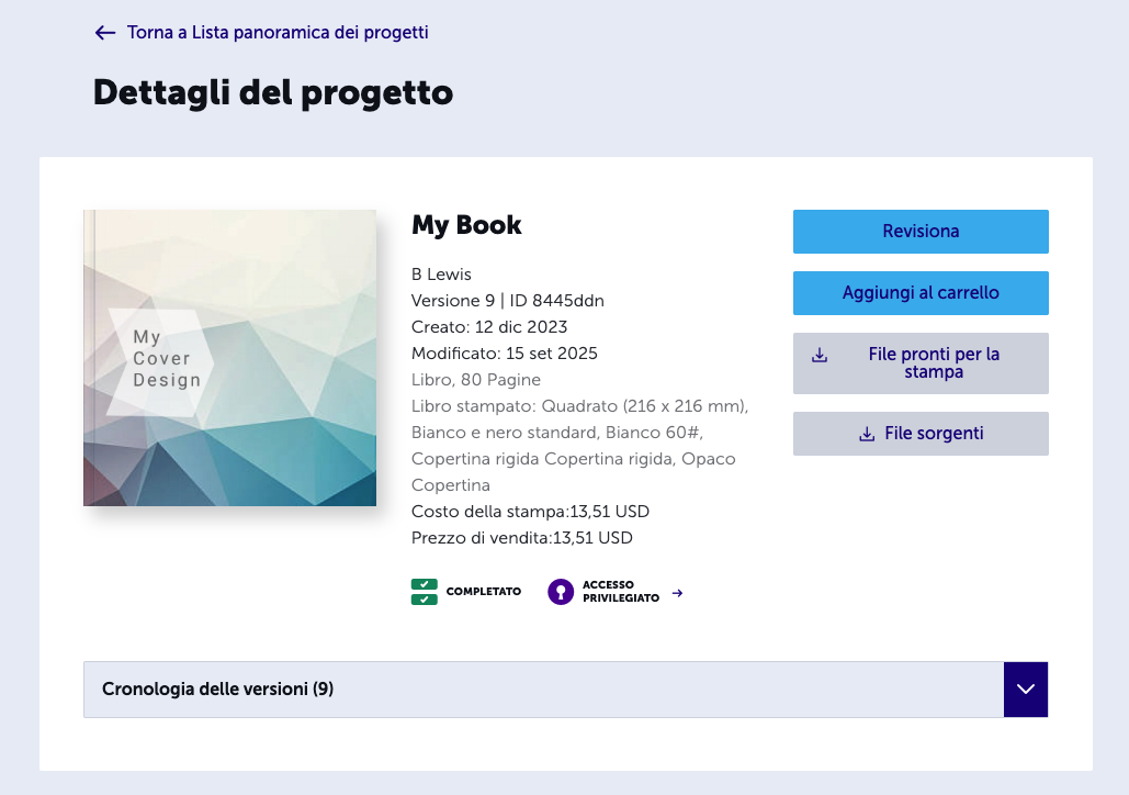 Gli autori Lulu che vendono i loro progetti nella libreria Lulu o attraverso la distribuzione possono ora creare le proprie promozioni (sconti) per quei progetti. Nota bene: durante le date in cui attuerete questa promozione, tutte le entrate realizzate durante questo periodo dal progetto selezionato rifletteranno una diminuzione rispetto alle vostre entrate normali (non promozionali). Il costo di stampa e il 20% di Lulu saranno comunque prelevati prima di ricevere le entrate finali di ogni acquisto.Le promozioni degli autori vengono inviate ai canali di distribuzione quando l'autore crea la promozione, non quando la promozione inizia. Questo per dare ai canali di distribuzione il tempo di elaborare le modifiche ai prezzi prima che entrino in vigore.Suggeriamo agli autori di creare i prezzi promozionali con mesi di anticipo (per i canali di distribuzione), in modo da dare loro il tempo sufficiente per elaborare i nuovi prezzi.Puoi impostare queste promozioni nella tua pagina I miei progetti:Dalla lista dei tuoi progetti, seleziona il progetto al quale vuoi applicare uno sconto. Clicca sul progetto per andare alla pagina dei dettagli del progetto:Poi scorri la pagina fino alla sezione Prezzi promozionali e clicca su Crea una promozione: Prendetevi il tempo di leggere le regole per le promozioni:Ogni promozione può durare da 1 a 30 giorni, ma è possibile eseguire solo una promozione alla volta. Durante la durata della promozione, non potrai cambiare il prezzo di vendita del tuo progetto. Una promozione deve essere programmata con almeno 14 giorni di anticipo.Devi definire i prezzi promozionali nello stesso modo in cui definisci i prezzi di vendita del tuo progetto. Il prezzo promozionale non può essere inferiore al prezzo minimo o superiore al prezzo massimo. Verrà visualizzato un avviso se non si soddisfano i requisiti:Una volta inserito il prezzo promozionale, clicca su Applicare un prezzo promozionale per programmarlo. La promozione inizierà il giorno in cui sceglierete di iniziarla e si fermerà il giorno in cui sceglierete di terminarla.Infine, verrà visualizzata una conferma della promozione pianificata:Le entrate creative dai canali di distribuzione (Lulu, Amazon, Hachette, ecc.) sono visualizzate nella sezione Vendite e pagamenti sotto I miei progetti. Lì troverete lo storico delle vendite e la stima del totale delle entrate non pagate prima di qualsiasi ritenuta d'acconto, in base al tasso di conversione della valuta di quel giorno.Potrai vedere il prezzo promozionale elencato nel rapporto delle vendite indicato da un'icona a sinistra del prezzo di acquisto.Nota: i file interni o le specifiche del libro non possono essere aggiornati mentre un prezzo promozionale è programmato o attivo